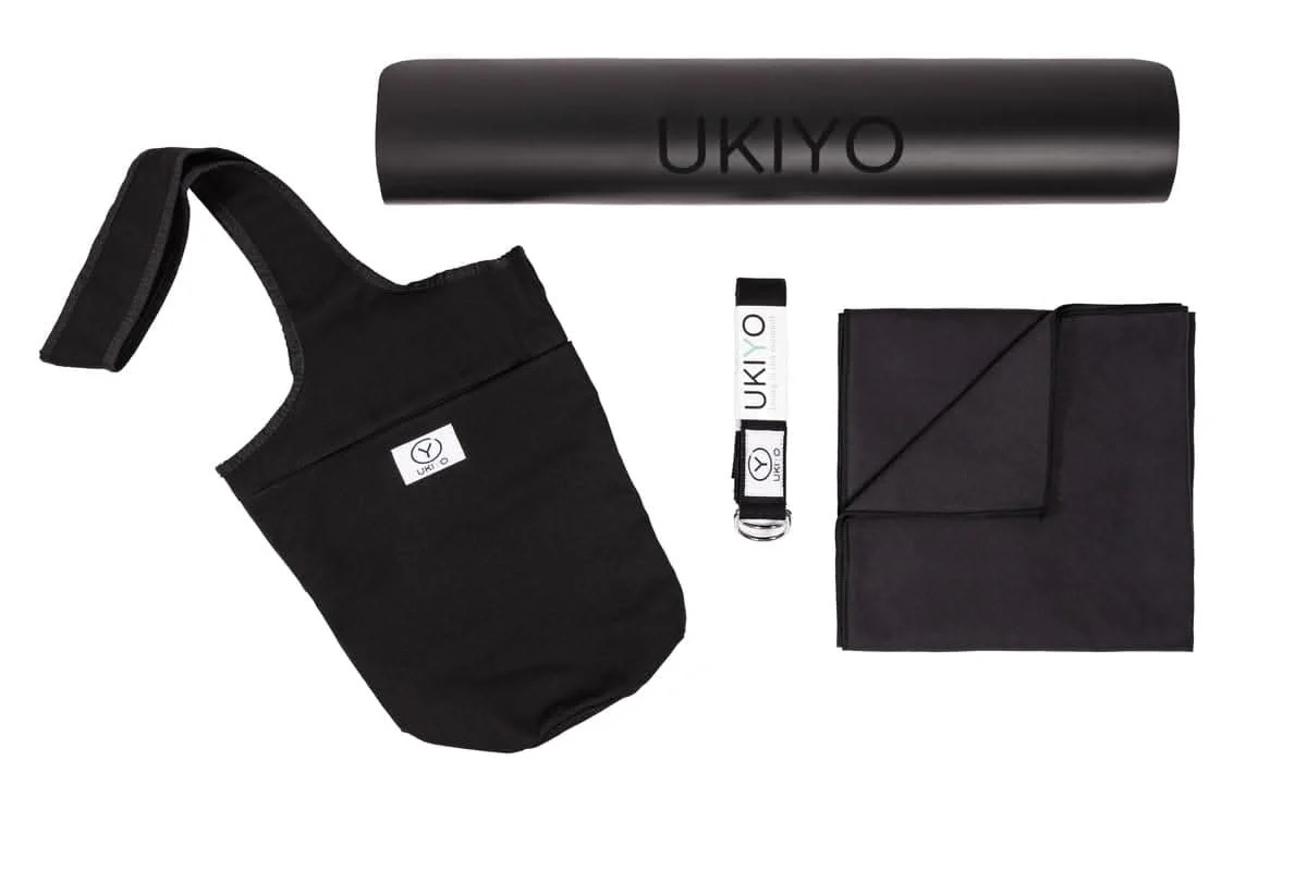 Black – Combo Ukiyo Yogi Set (Yoga Mat, Yoga Strap, Yoga Towel and Shoulder Bag)