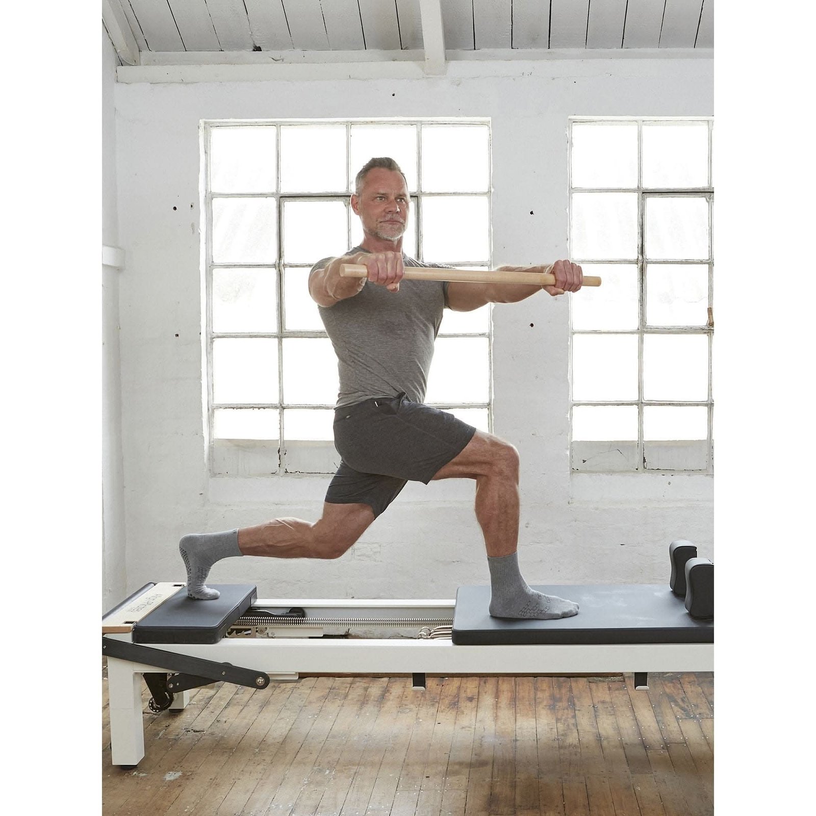 The Align-Pilates Maple Roll Up Pole can be used to support alignment, strengthen the arms, and put more emphasis on scapular stabilization when doing Pilates exercises on the reformer, ladder barrel, or mat. It also helps with balance when using the Pilates reformer for standing exercises.