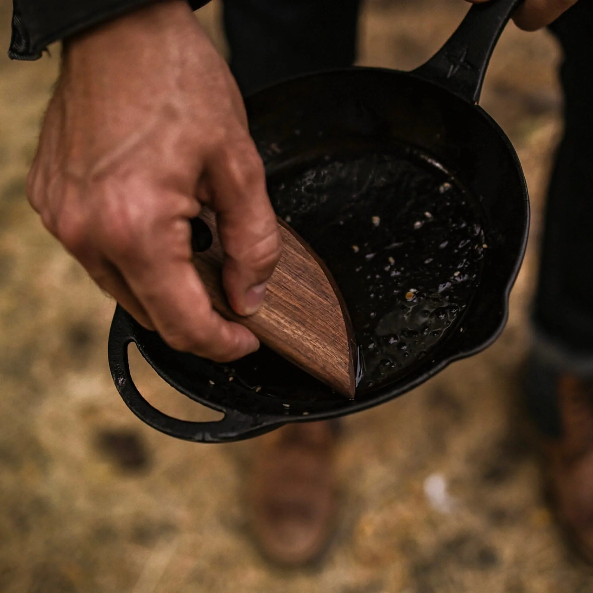 A lightweight, natural tool for cleaning ceramic, non-stick, or cast iron pans. The double-sided bevel design offers a variety of angles for cleaning, while a thumb indent provides ergonomic support without slippage. Buy two and utilize as minimal salad tongs! Made of beautiful, durable walnut polished with mineral oil.