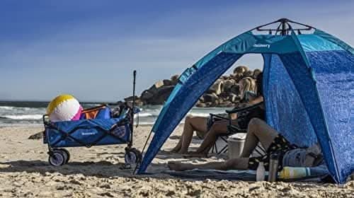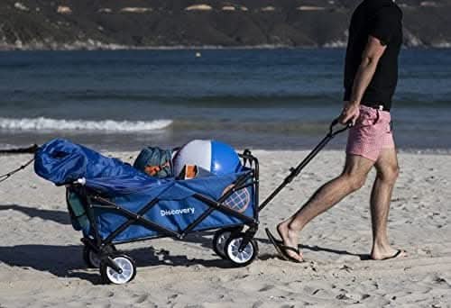 Discovery Adventures Outdoor Wagon, All Terrain Heavy Duty Folding Collapsible Wagon, Adjustable Handle and Easy to Transport, Maximum Weight – 220lbs, Large. Dimensions: 90.2 X 51.3 X 57.2 cm