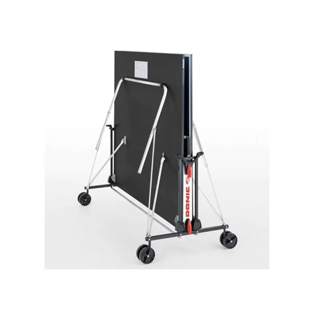Well-priced indoor hobby table. 19mm top without frame and good bounce of the ball.. Integrated stationary net. Large 125mm double wheels. Safety handle locking system.