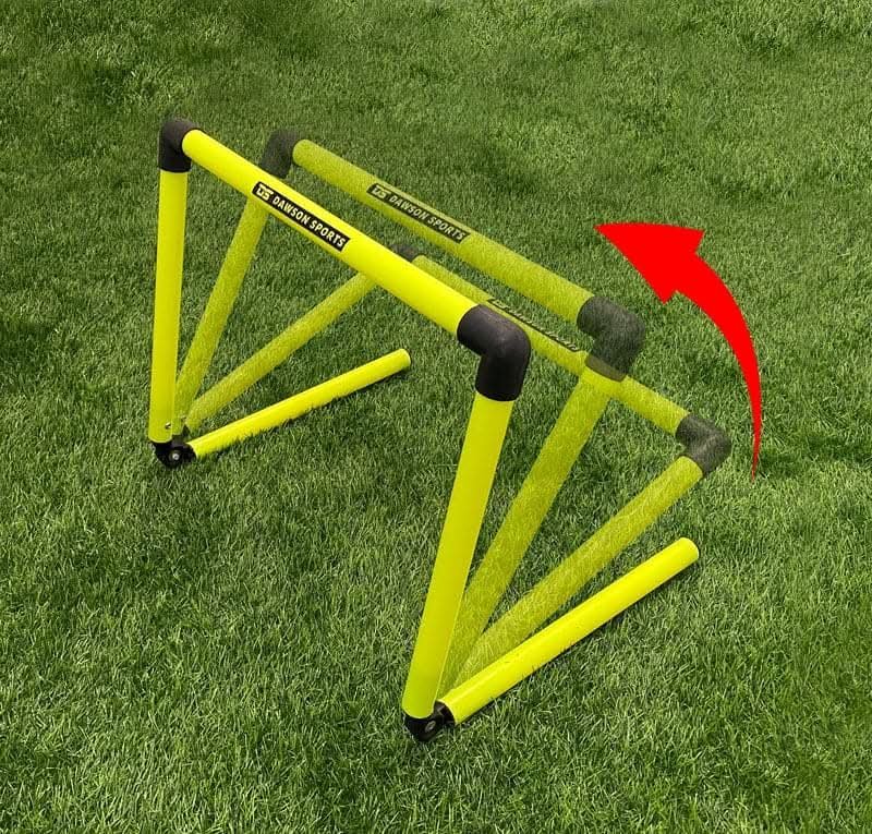 This is perfect for high knee power and plyometric training drills. challenge the taller or more advanced athletes with stride technique drills forcing a high knee power recovery. Made of heavy duty PVC tubing, 45 cm wide. A 3-point base system ensures the hurdle remains steady even on uneven turf.