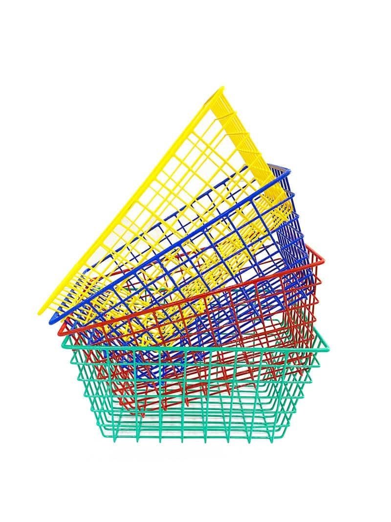 Steel PVC coated wire storage baskets.