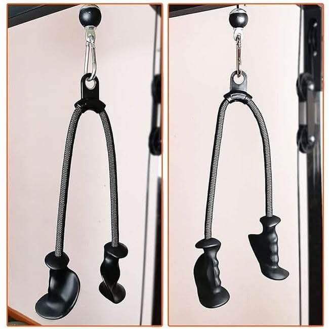 Workouts for different motions: Our pulldown rope allows you to do all triceps exercises with full extension and even some shoulder stuff like face pulls, triceps push down, overhead pull back,etc; And the rotate handles make your strength training more comfortable and flexible