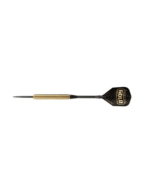90% Tungsten gold-colored darts. Straight traditional multi-ringed barrels. Perfectly weighted slimline styled darts. Quality anodized alloy stems. Barrels Engraved with Eric Bristow. Features Electro Shafts, Slim pack Case. Dimplex Marathon Gold Flights.
