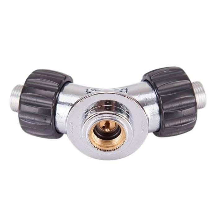The Kovea 2 Way Adapter features a single Lindal Valve input and acts as a splitter to create two separate outputs. This 2 Way Adapter’s two Lindal Valve outputs rest closed which means gas does not spew out if a stove is unthreaded from the Adapter. Both outputs rotate with knurled knobs to prevent twisting and kinking of air hoses.