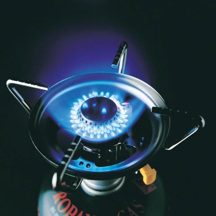 The perfect diameter of the bottom of the cookware for this gas burner -. 15 cm Gas burner has a screen that efficiently reflects heat in the bottom of the pan thereby increasing efficiency and reducing fuel consumption.