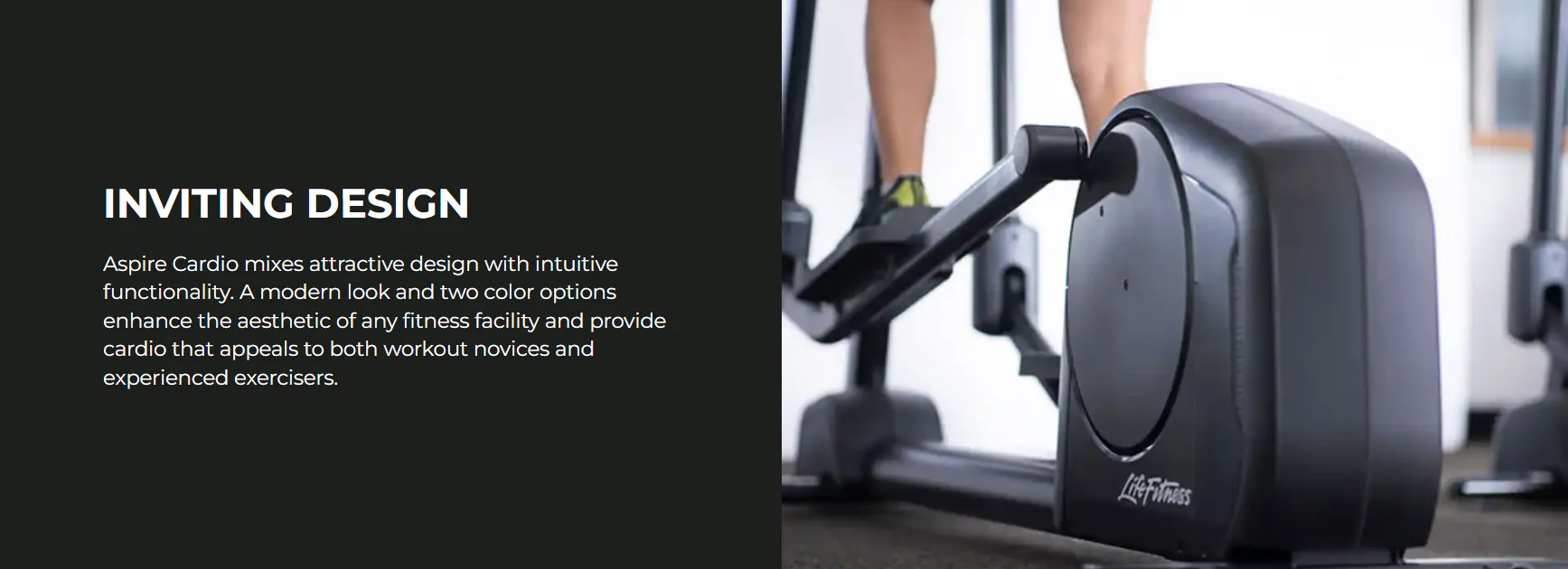 The Aspire Cross-Trainer embodies over five decades of Life Fitness innovation, providing the perfect balance of design, reliability, and advanced biomechanics.
