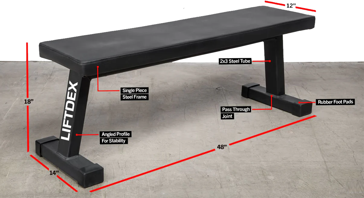 No limitations. No assembly required. The redesigned Liftdex Flat Utility Bench takes the weight bench back to basics, featuring a 2×3” 11-gauge steel construction, a high-density closed-cell foam pad, and a pair of angled, wide-set legs for maximized stability. Customers also have the option of upgrading to Liftdex new Premium Textured Foam Pad.