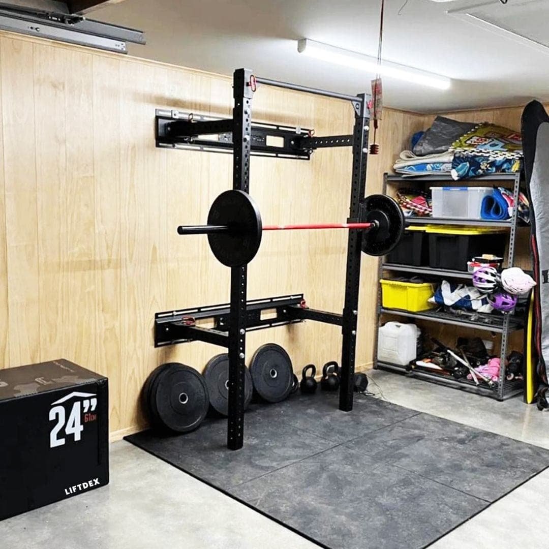 Enjoy the highest quality, full-body workouts at home with the Liftdex Foldaway Squat Rack.
