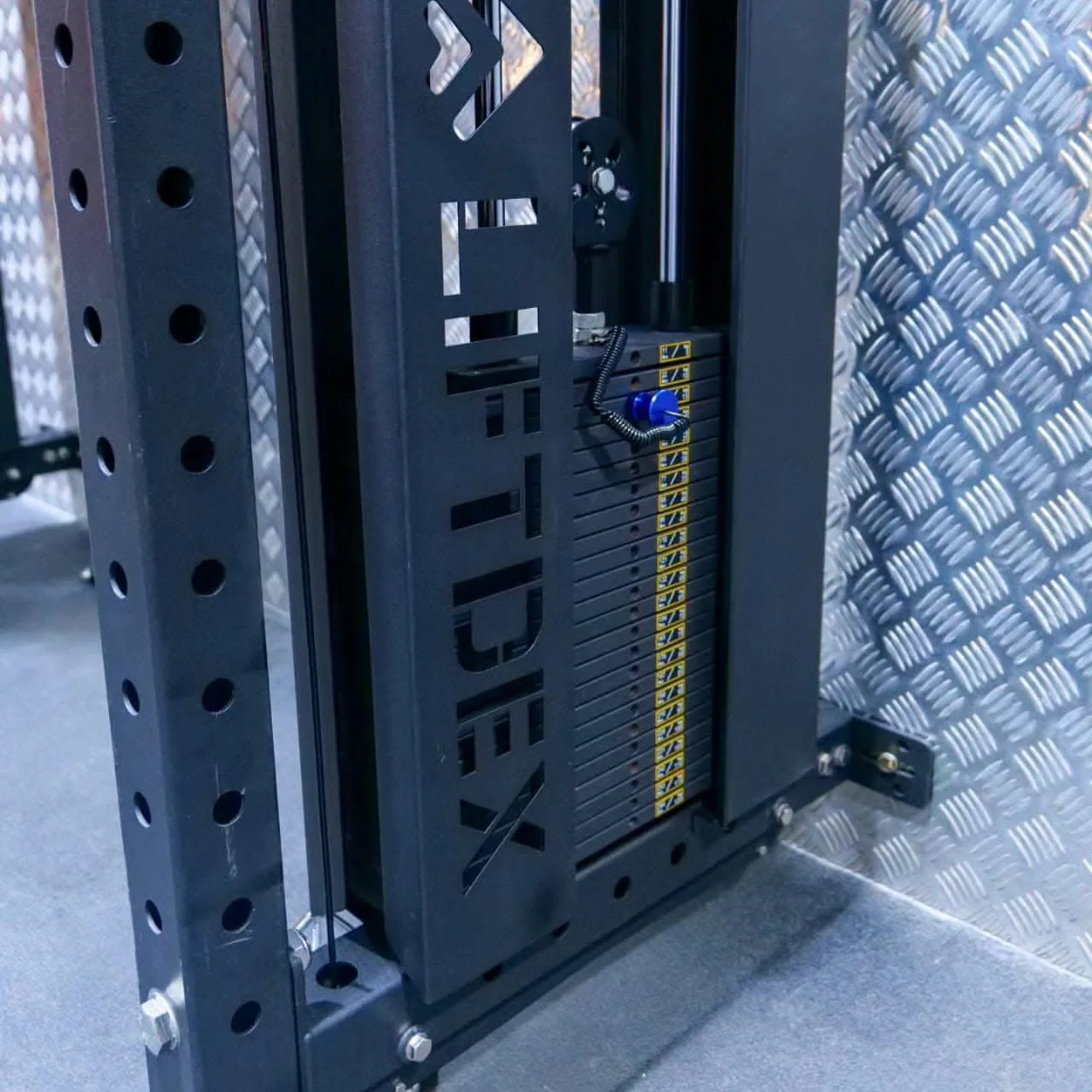 The weight is easily adjusted from the side of Performance Wall Mounted Cable Column using a pin. Each Liftdex Wall Mounted Cable Column features a 2.5m upright and two 0.7m crossmembers with pulleys preinstalled.