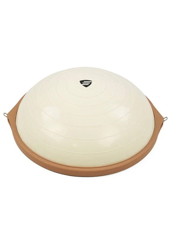 The half ball can be used with the flat side down for stability exercises or with the rounded side down for balance exercises.