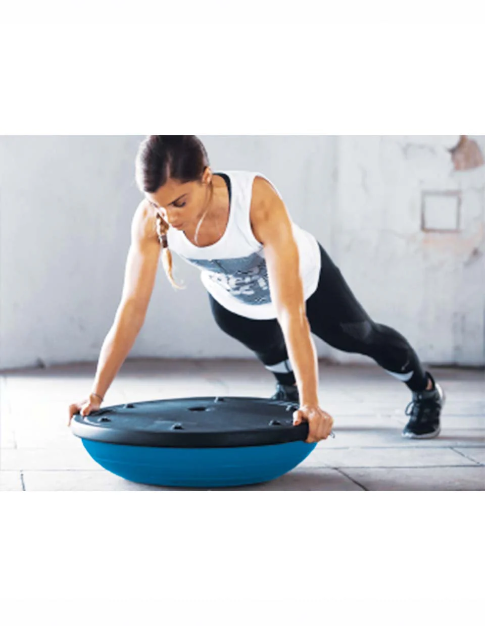 Dome-shaped side challenges balance, proprioception, and core muscles