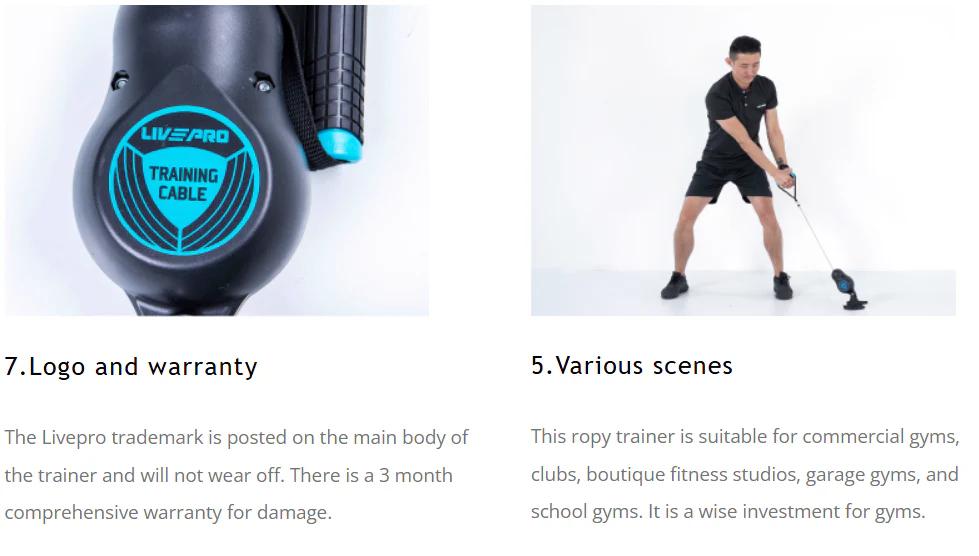The compact and portable design allows for convenient home use or on-the-go training. The Livepro Home Training Cables are suitable for individuals of all fitness levels and offer a convenient way to stay active and fit at home.