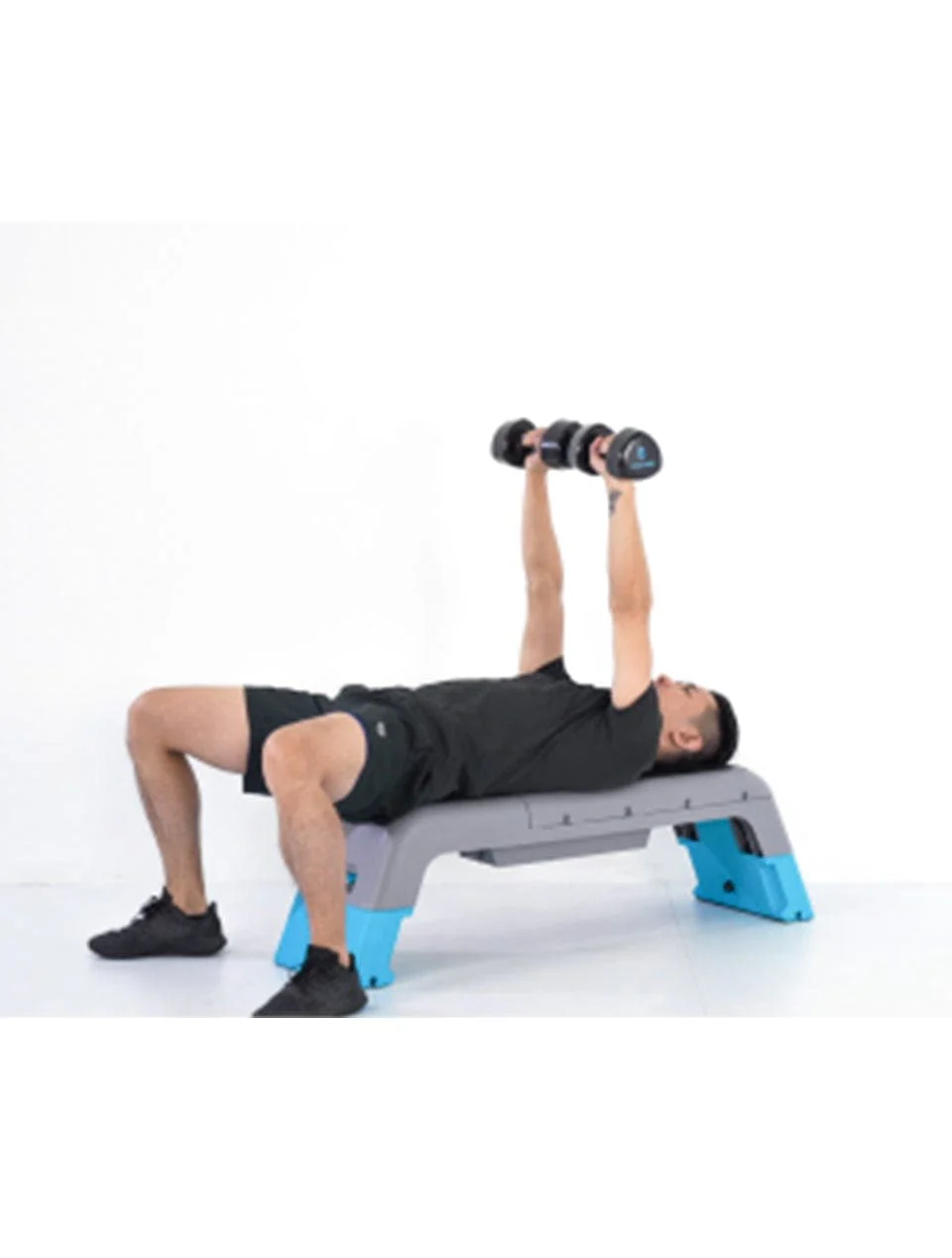 The LivePro Multifunction Step is a versatile piece of exercise equipment designed to help users perform a variety of workouts and exercises. It is a sturdy and durable platform made from high-density polyethylene and can support up to 250 kg of weight. The step has three adjustable height levels (15cm, 20cm, and 25cm), allowing users to customize their workout intensity.
