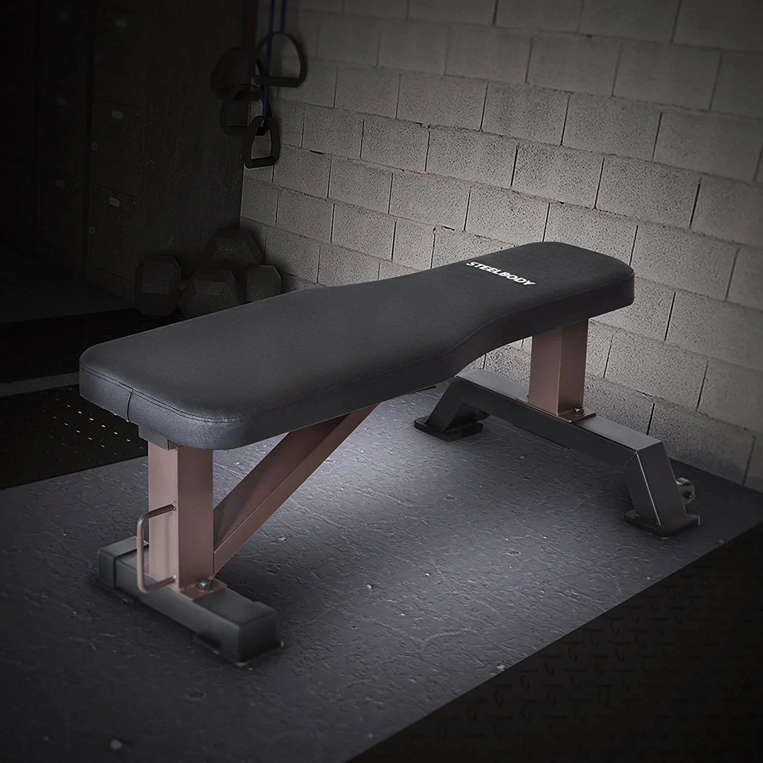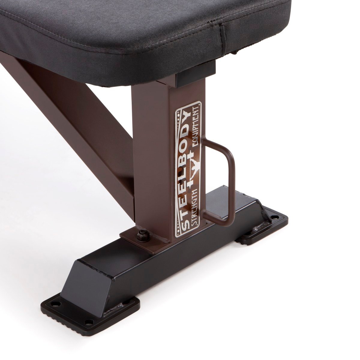 Heavy-duty steel construction and powder-coated finish optimize the durability of the SteelBody Flat Bench.