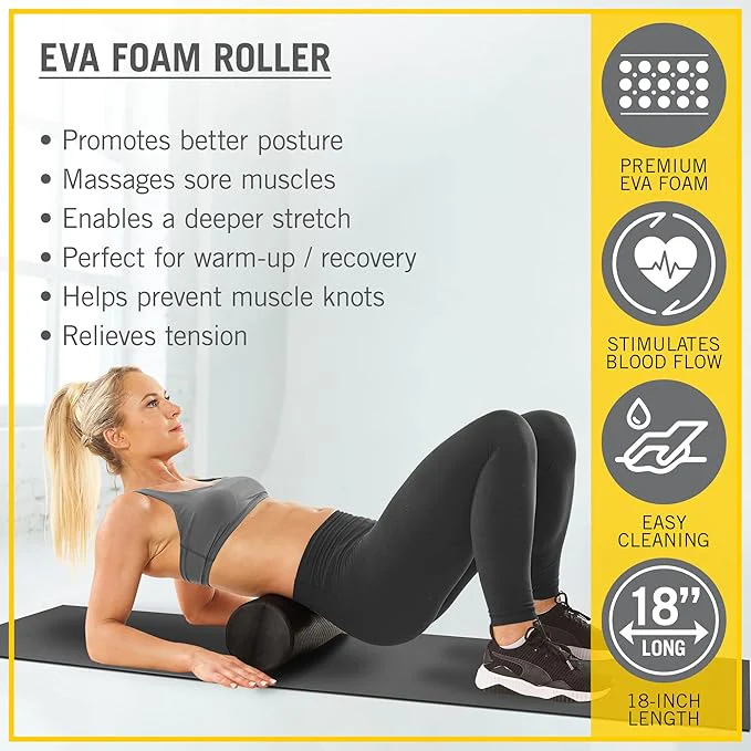 From your legs and back to your arms and shoulders, this 18-inch foam roller provides full-body relief. Its firm, shock-absorbent surface effectively targets all muscle groups, making it a must-have tool for comprehensive muscle care.