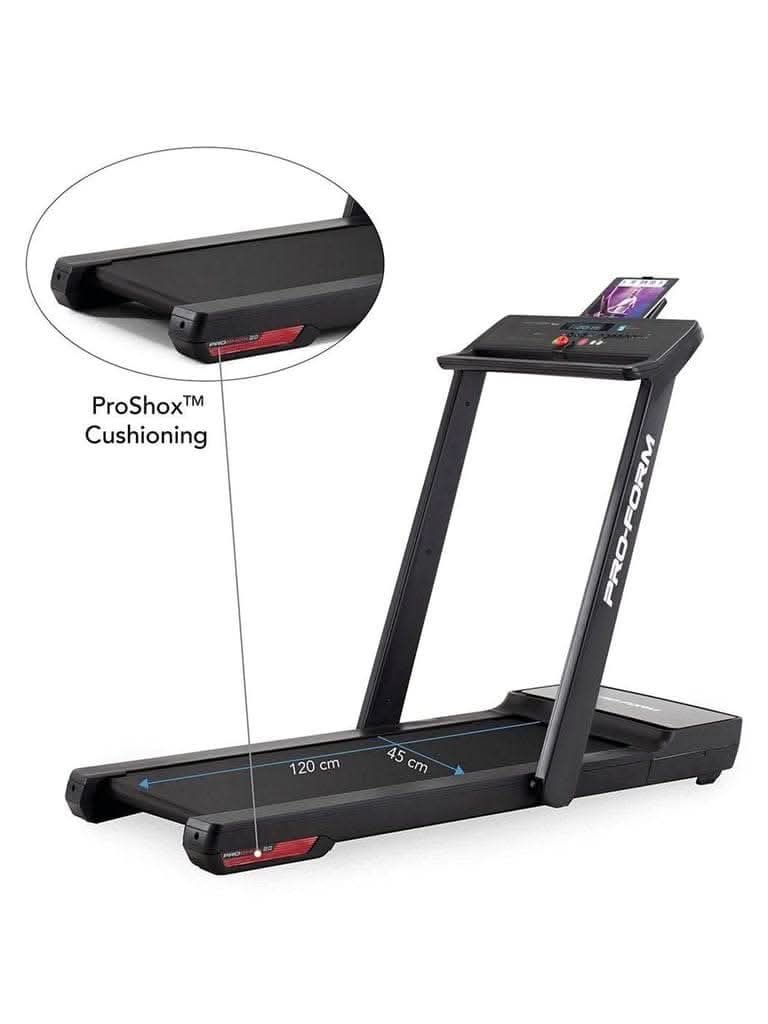 Compact SpaceSaver DesignThe ProForm City L6 smart treadmill is engineered for people who don’t want to sacrifice their living space to maintain a fitness habit. An innovative folding design paired with a low profile turn this treadmill into the ultimate space saver. | Integrated Device ShelfPower your workout with iFIT personal training that automatically adjusts your speed as you work out—or stream your own entertainment. | ProShox Deck CushioningMaximize your comfort to get more out of every run. ProShox deck cushioning allows for a low-impact run so that you can focus and enjoy workout after workout. | Front-Mounted Transport WheelsManage your space—whether during or between workous. Adjust, transport, or store your treadmill quickly and easily thanks to front-mounted wheels. |