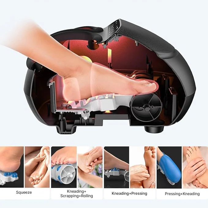 Heating Function: The foot massager includes a heating feature to add extra comfort, promoting warmth and relaxation for tired feet.
