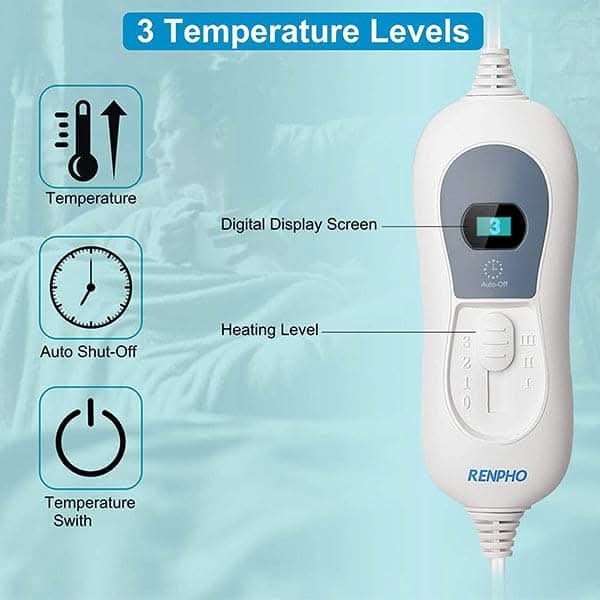 Smart Heating & Timer Settings: The LED controller of the electric heating pad has 3 heating settings. 90 minutes automatic shut-off function ensures safety and energy saving. The extra long power cord allows you to move extra movement while using the heat pad.
