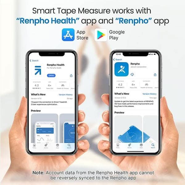 Smart Tape Measure: If you want your body measurements progress showing for graphing over time, this is the best Smart Body Measuring Tape for you; complete with fully integrated Renpho App connectivity. Syncs with Apple Health