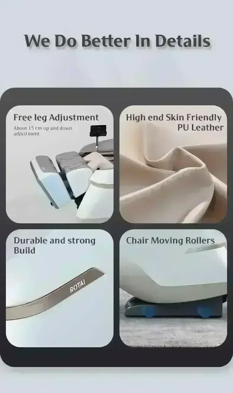 24 Airbag System: A full-body 24 airbag system envelops your shoulders, back, waist, arms, calves, and feet with dynamic air compression. This targeted compression therapy helps reduce muscle tightness, improve circulation, and enhance relaxation.