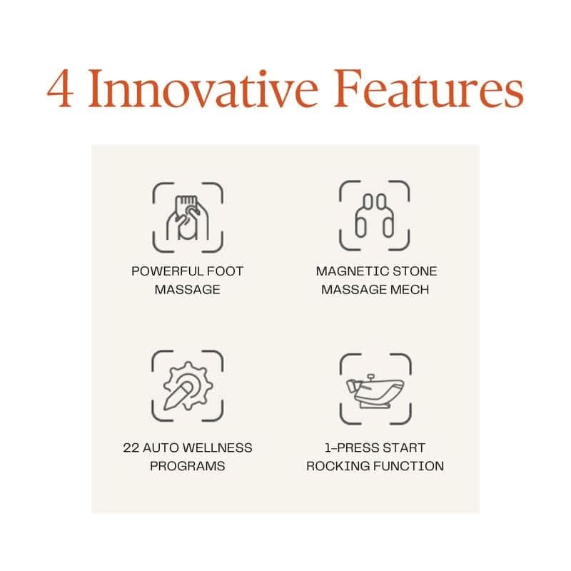 3rd Gear Zero Gravity : The best feature of the amssage chair is the 3rd Gear Zero Gravity it provides . While taking massage , one will feel that they are in a space capsule and thus will enjoy the comfort and tranquility of being alone for sometiime .