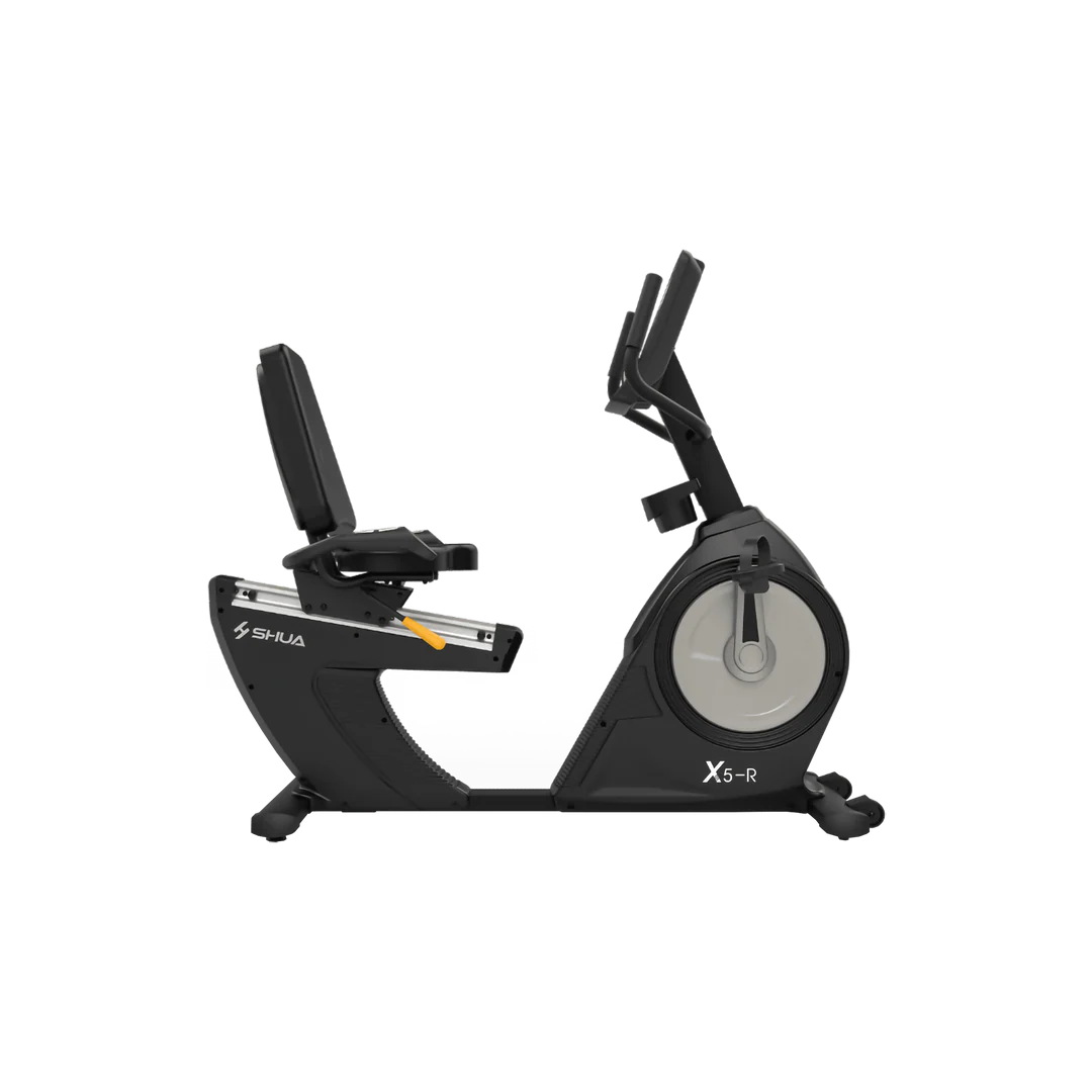 SHUA SH-B6500R recumbent carries out a comfortable and smooth workout. The creative walk-through design gives a stable and durable performance, allow users to easily get on and off the equipment. With the adjustable ergonomics seat design, users with different heights and ages can reach a effective, smooth and low impact workout. And the integrated console provides the most intuitive training experience.