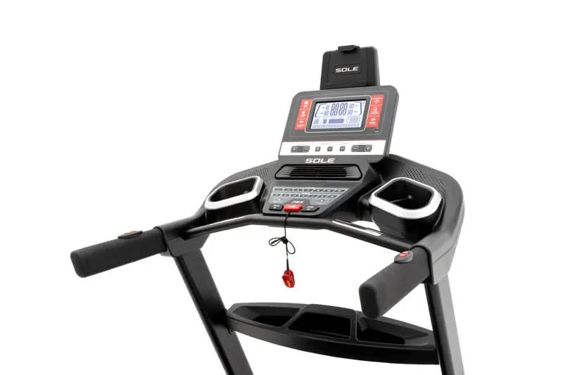 With all SOLE treadmills, when not in use the treadmill deck locks into place, 100% secured. Run up to six preset programs including cardio training and fat burning specific programs. Other safety features include: A large stop switch with tether cord, starting speed of 0.5 mph, a low-profile running hood that doesn’t get in the way of your running gait, and a step-up height consistent with commercial grade treadmills.
