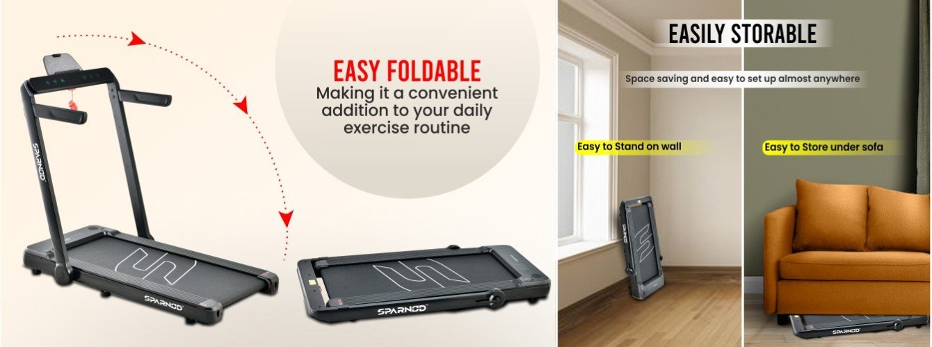 2-in-1 Walking-Running Mode – When treadmill riser is folded it becomes under desk/walking pad with speed upto 6 Km/h and when the riser is up it.