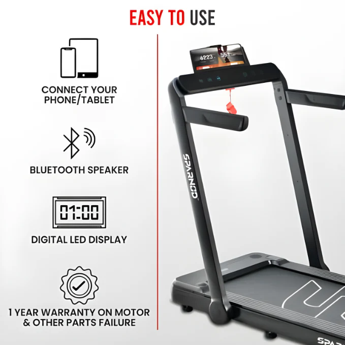 | Features | 7 Layer Anti-Slip Running Belt | Wireless Remote Control. | Bluetooth Speakers. | Transportation wheels. | Phone Holder. | Start/Stop button and a Safety Key. |