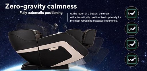 Space Saving with Zero Gravity Positions. With the Zero Gravity position providing a total relaxed position wherein the feet are elevated, maintain bodily functions at an optimal level. Auto extendable footrest with 3 rows of underfoot rollers allowing more intensive and more in-depth massage.