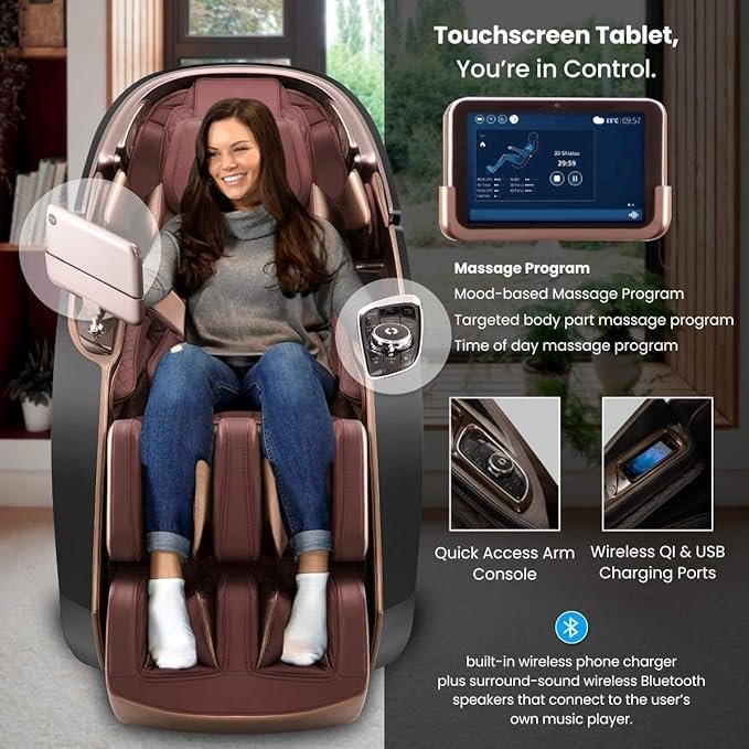 Ultimate luxurious massage experience: supports charging with or without power cable. The interior cabin is made of CX, CXP series of high quality PU leather, along with 3-layer luxury head & back cushions. 3D surround sound with Bluetooth speaker produce a stunning sound image that allows a unique experience of melodic tones and a complete dive into your favourite music.