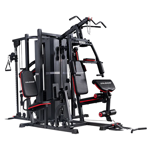 The SMG-17000 Five Station gym machine offers a versatile and durable workout with a 145kg weight stack and 500kg user capacity. Its robust steel frame and compact design make it ideal for both home and commercial gyms. Assembly required, with a 1-year warranty included.