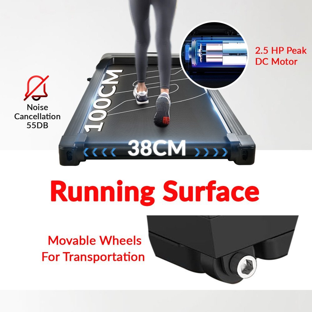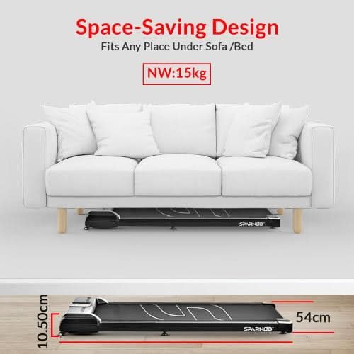 The Sparnod Fitness 2-in-1 walking pad treadmill enables smooth, uninterrupted walking or light jogging due to the powerful 2.5HP continuous-duty DC motor.