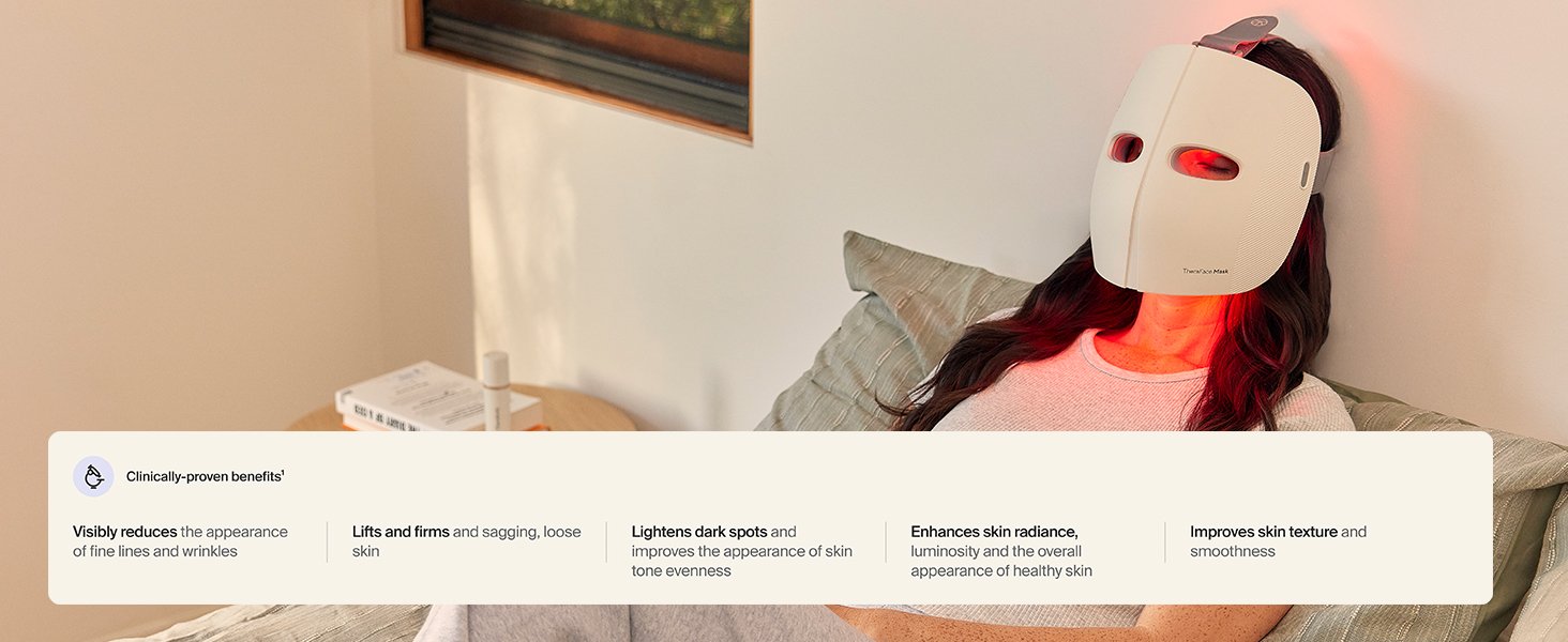 Vibrating Facial Massager, Too: TheraFace LED mask delivers a 15-minute vibration therapy treatment to key pressure points to promote relaxation and stress relief and boost circulation for a more refreshed look.