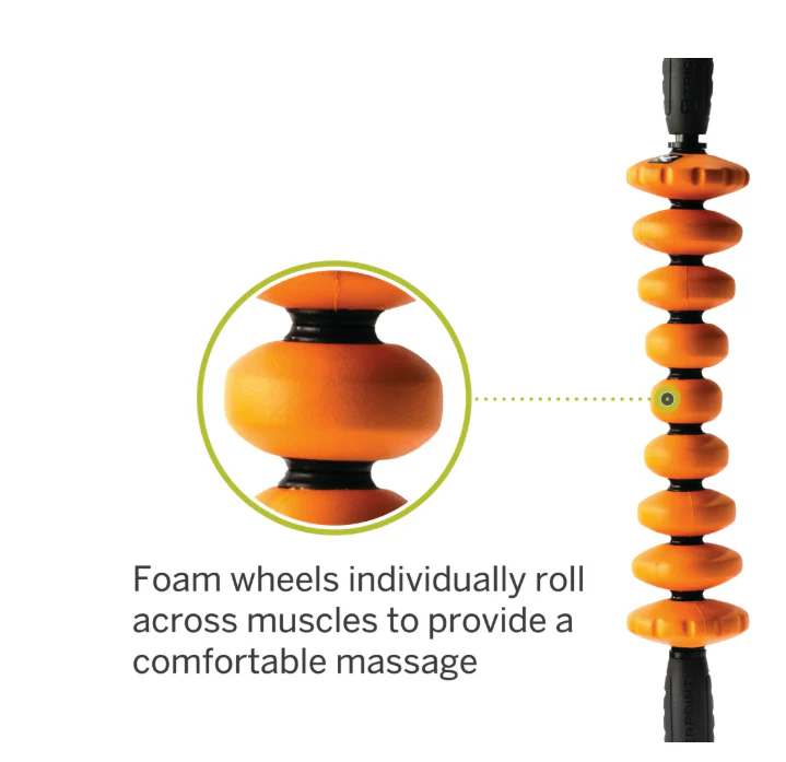 The nine medium-density foam spindles of the STK Contour roll independently, mimicking the hands of a professional massage therapist. This innovative feature increases circulation, reduces muscle stiffness, and enhances muscle mobility, offering a soothing, rhythmic massage that helps improve overall muscle function.