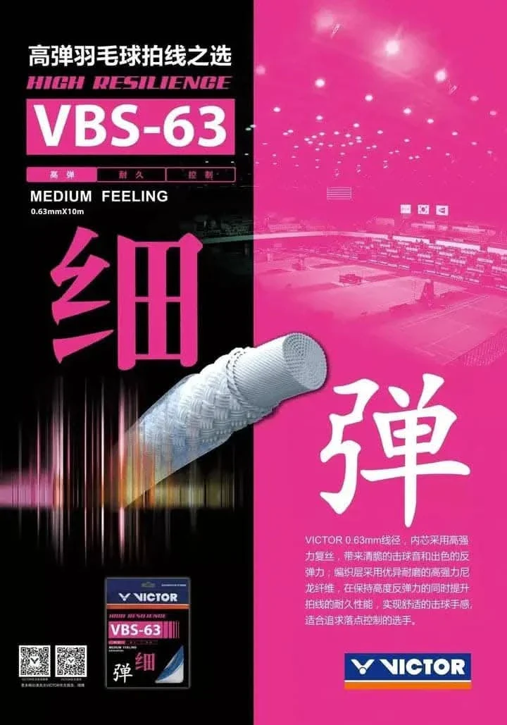 VBS-63 is a 0.63mm-string wrapped with high-strength multifilament, that provides a high and crispy hitting sound. VBS-63 is made from high-strength nylon fiber, maintaining an excellent resilience and durability to achieve a comfortable hitting feel. This string is suitable for the players pursuing good placement and high control.