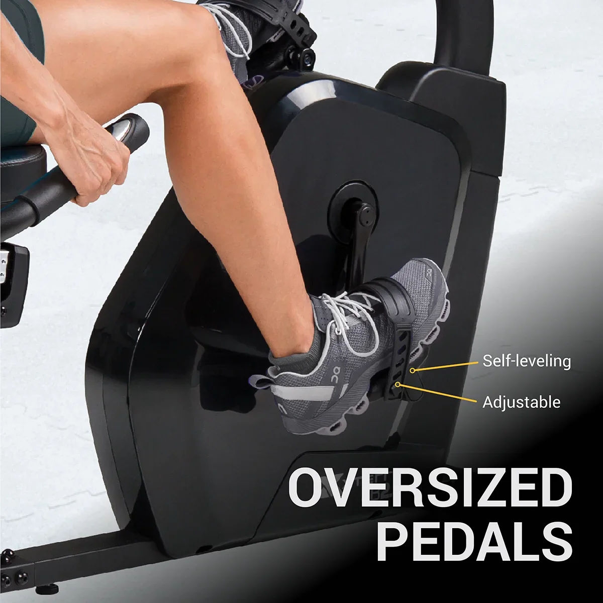 Equipped with oversized, self-leveling pedals and a 3-piece quality pedal crank for a secure and efficient ride.