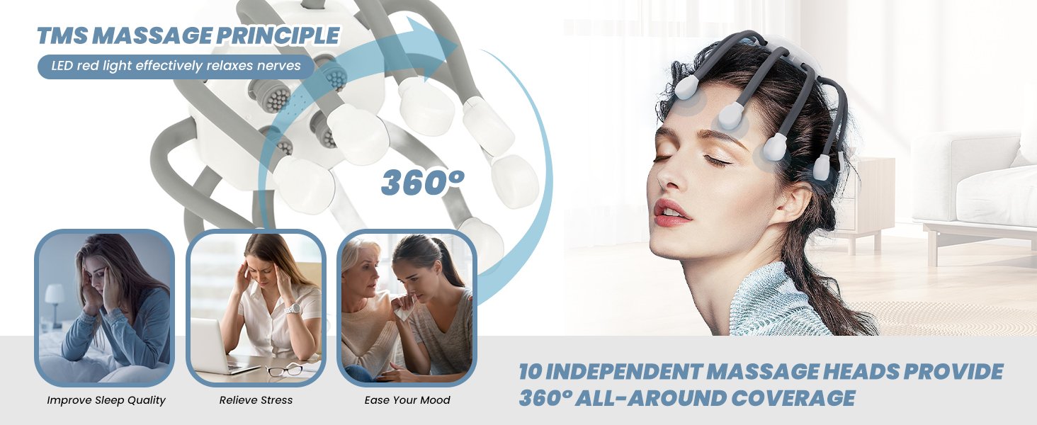 Stress Relief and Brain Stimulation: Effortlessly relieve stress, boost brain stimulation, and enhance sleep quality with this versatile head massager.