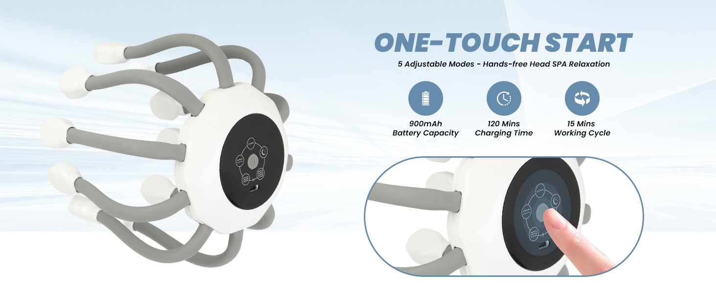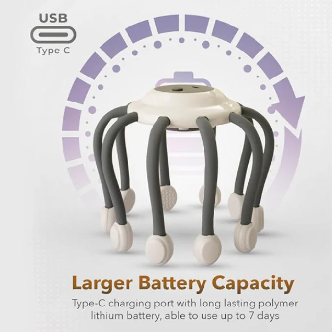 Lightweight and Portable: Effortlessly carry the OctoGusto Head Massager anywhere with its easy-to-carry lightweight and portable design.