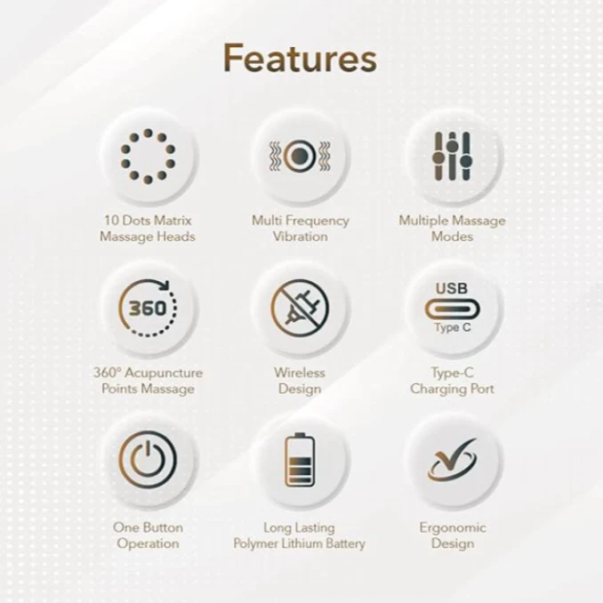 Wireless and Ergonomic Design: Experience convenience with the wireless design and ergonomic shape, ensuring a comfortable and hassle-free massage session.